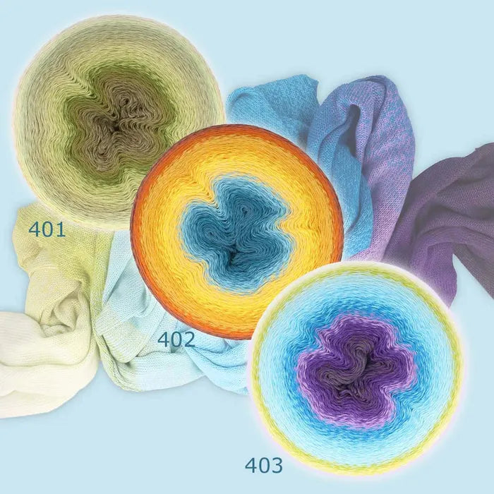 Scheepjes Mega Whirl lives up to its name: these giant yarn cakes have a running length of (almost) 3 kilometres! This yarn features long and flowing colour changes, just like the smaller Scheepjes Whirl yarn. The combination of cotton and acrylic gives the yarn an airy and lightweight result. The extremely long running length makes this yarn ideal for extra-large projects such as blankets, large shawls, summer tunics and dresses. It works really well with lace-like crochet and knitting techniques. One Mega Whirl yarn cake is enough for one large project.