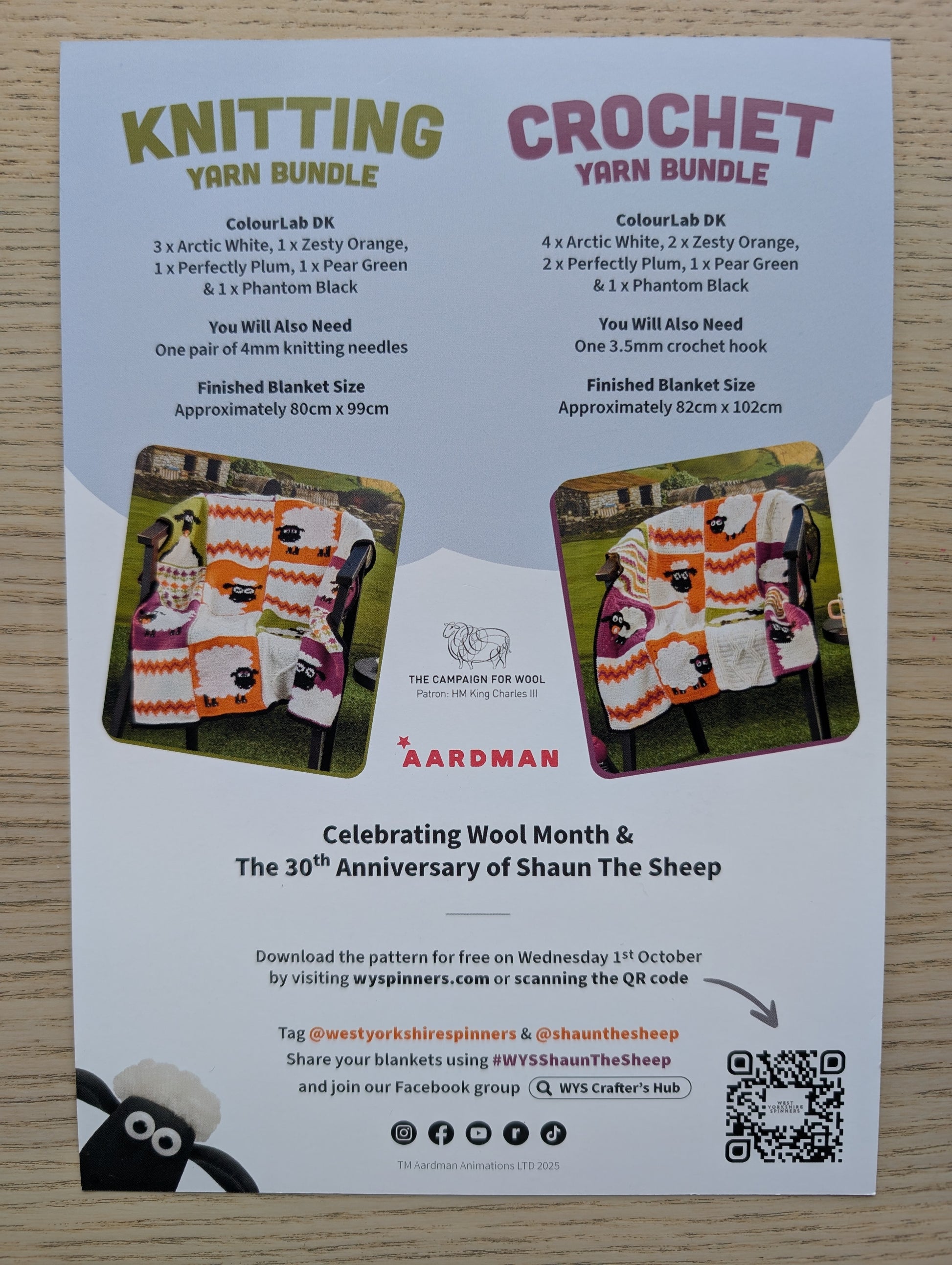 Shaun the Sheep and The Patchwork Project is our 100% British wool blanket made using the vibrant colours from ColourLab DK. The squares feature recognisable shapes, wooly cables, and the faces of much-loved characters Shaun, Timmy & Shirley.